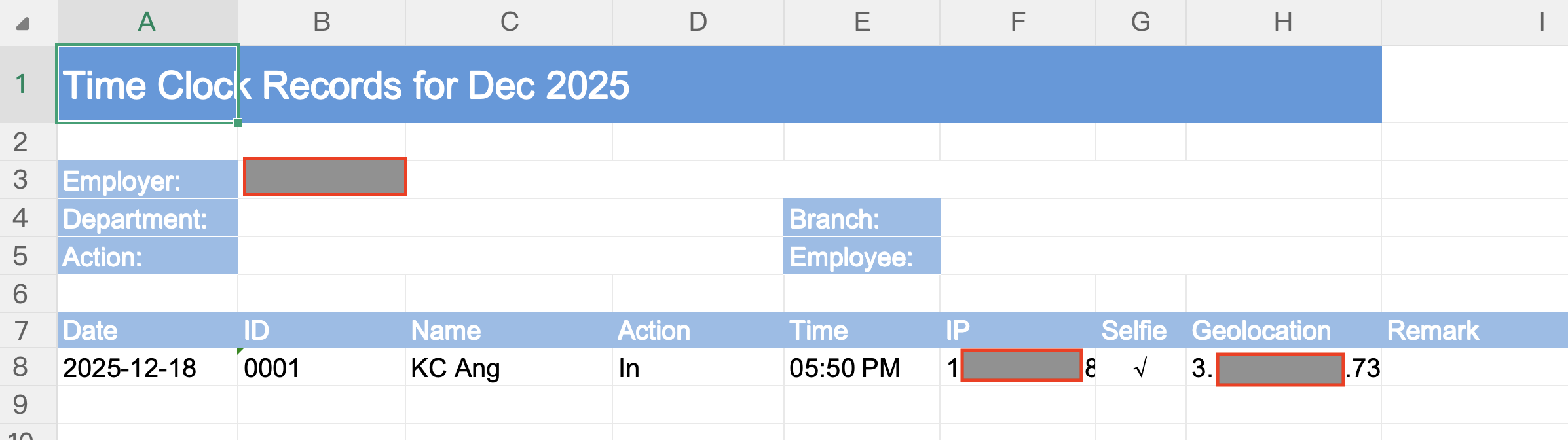 However, it became to below format when we retrieve our Nov’25 attendance report, in which the geolocation coordinates has disappear.